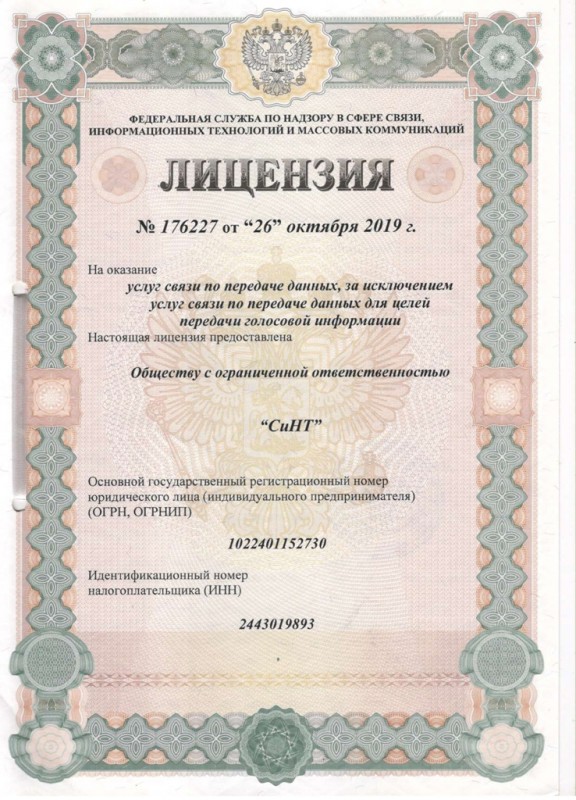 — лицензия № 176227 на услуги связи по передаче данных, за исключением услуг связи по передаче данных для целей передачи голосовой информации