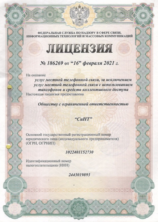 — лицензия №186269 на услуги местной телефонной связи,